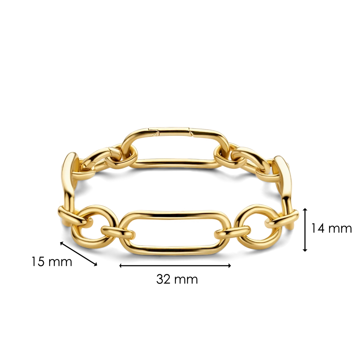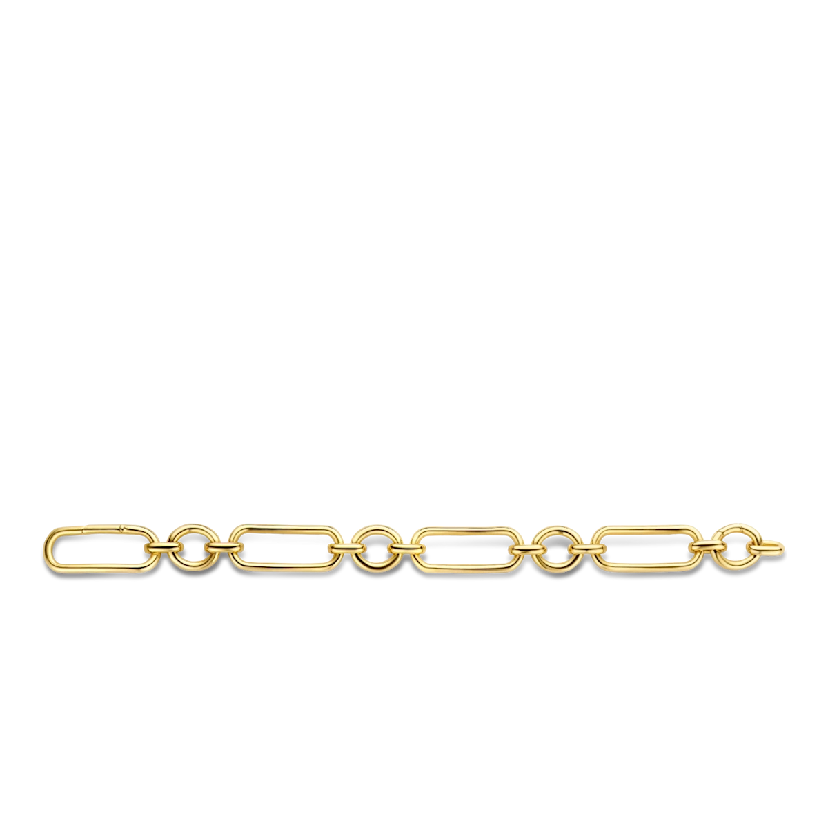 - Design: Il bracciale presenta una combinazione unica di maglie di diverse forme, alternando maglie rettangolari e circolari per un look contemporaneo e classico allo stesso tempo.