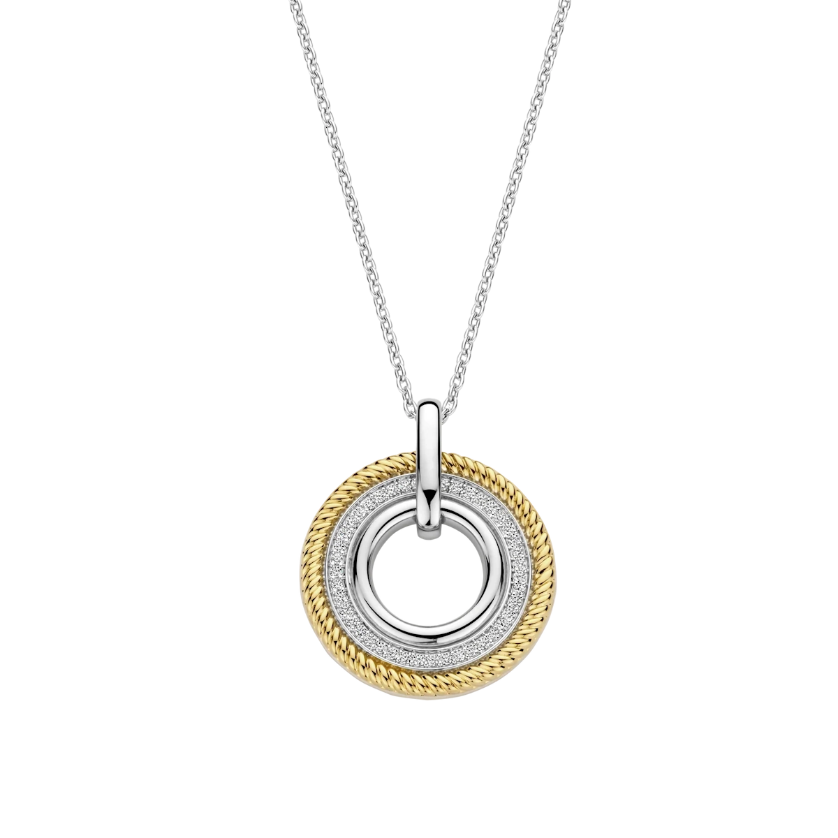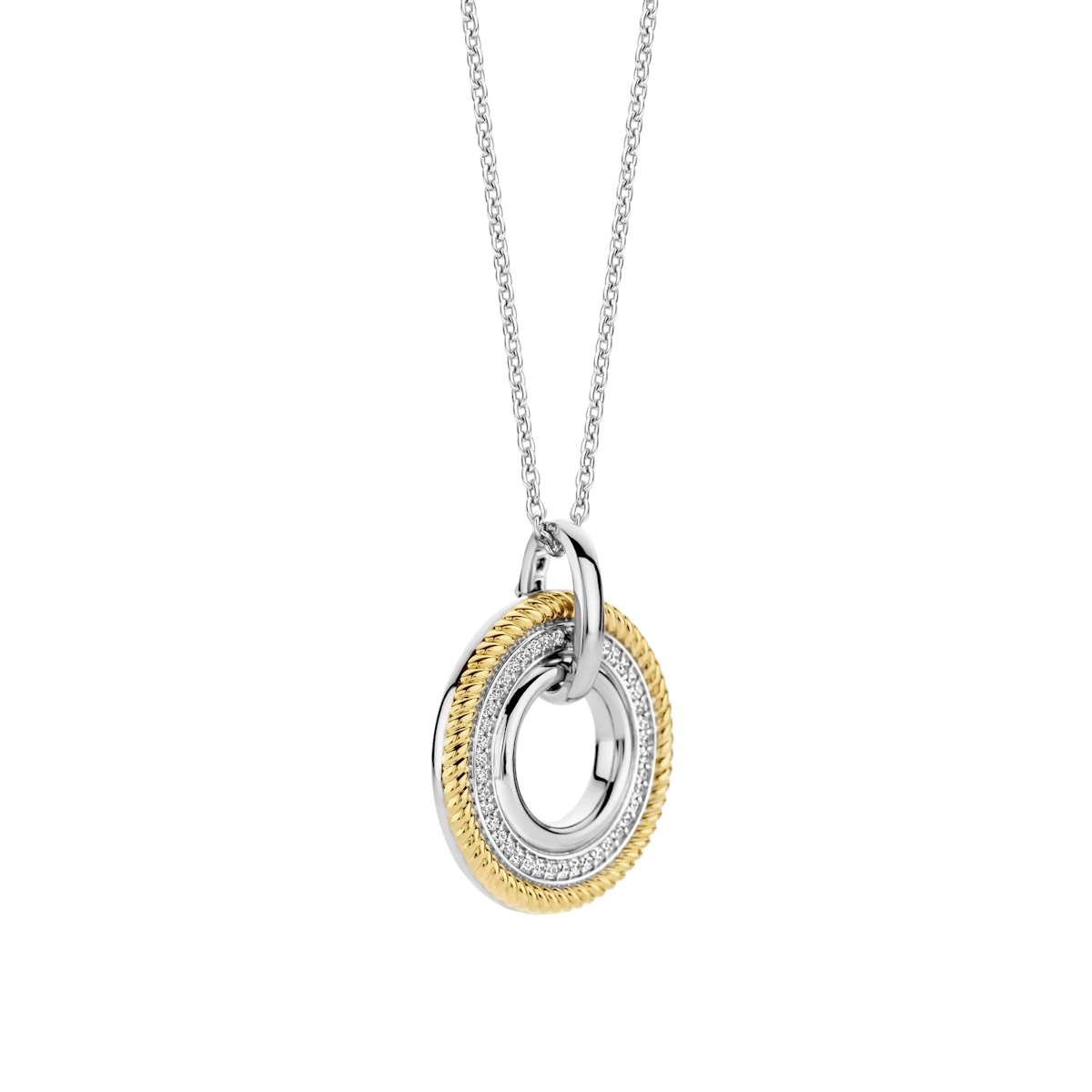 Il pendente TI SENTO – Milano 6833ZY si distingue per il suo design audace e raffinato, che gioca sui contrasti dei metalli e delle pietre.