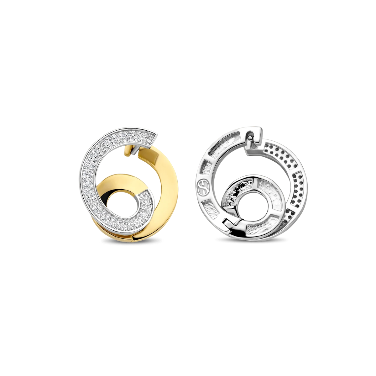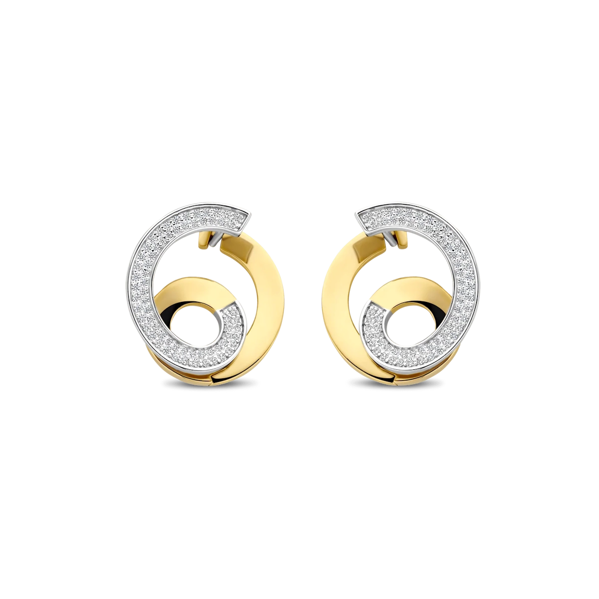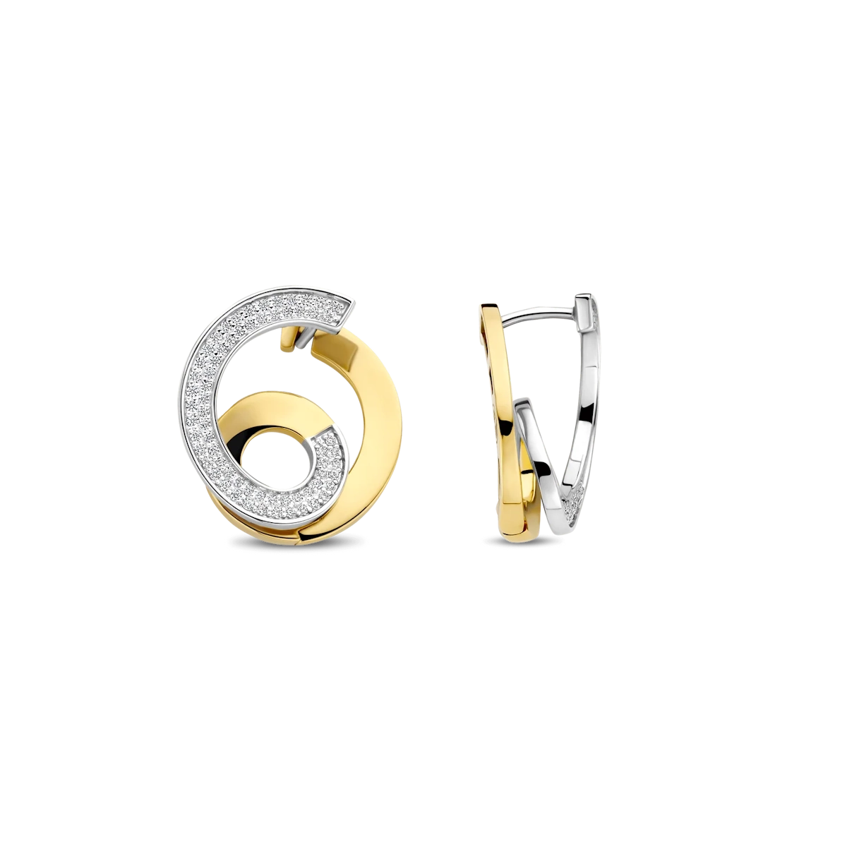 Gli orecchini TI SENTO – Milano 78040ZY si distinguono per un design scultoreo e bicolore che crea un movimento visivo dinamico.