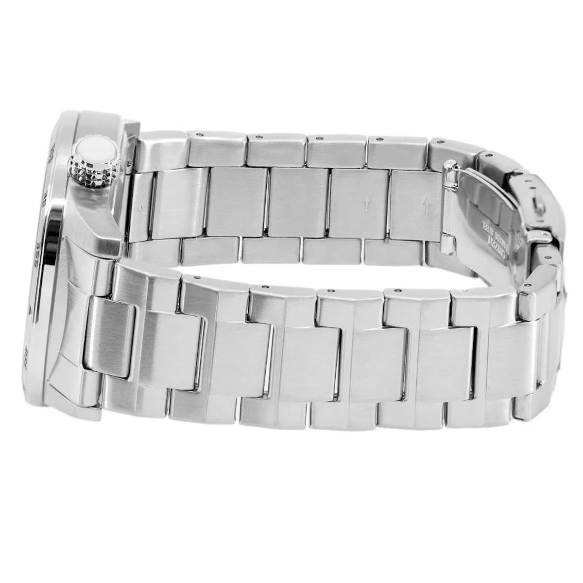 Cassa 44mm in acciaio con fondo serrato a vite. Bracciale in acciaio. (o cinturino in poliuretano) WR 10bar.