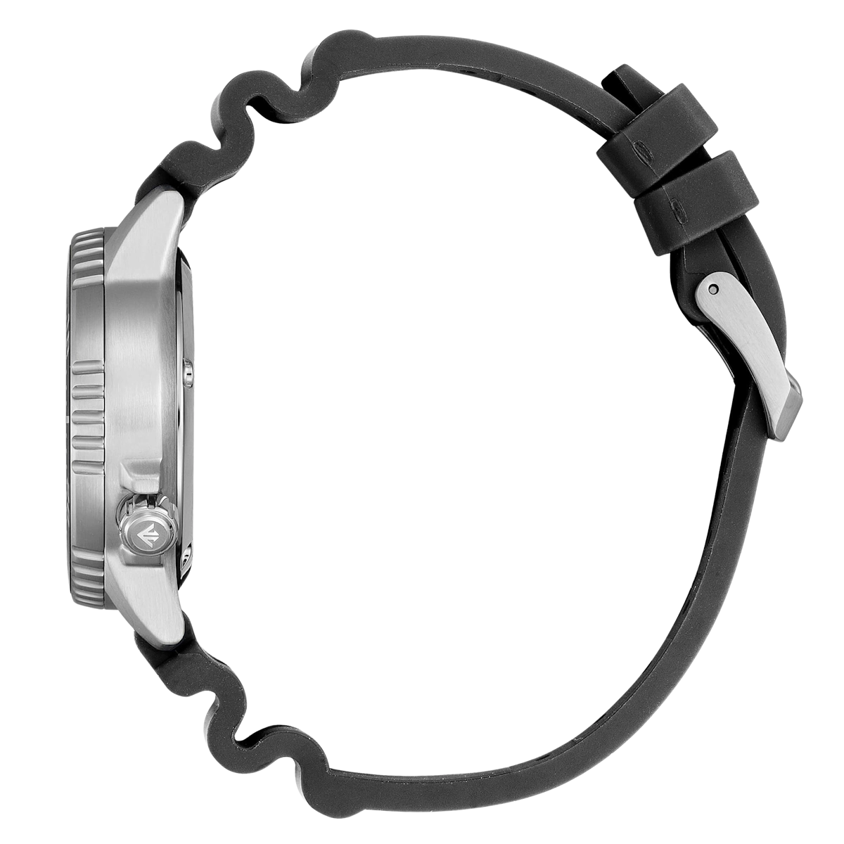 Cassa in acciaio. Cinturino in caucciù. Vetro minerale. Ghiera girevole uni-direzionale.