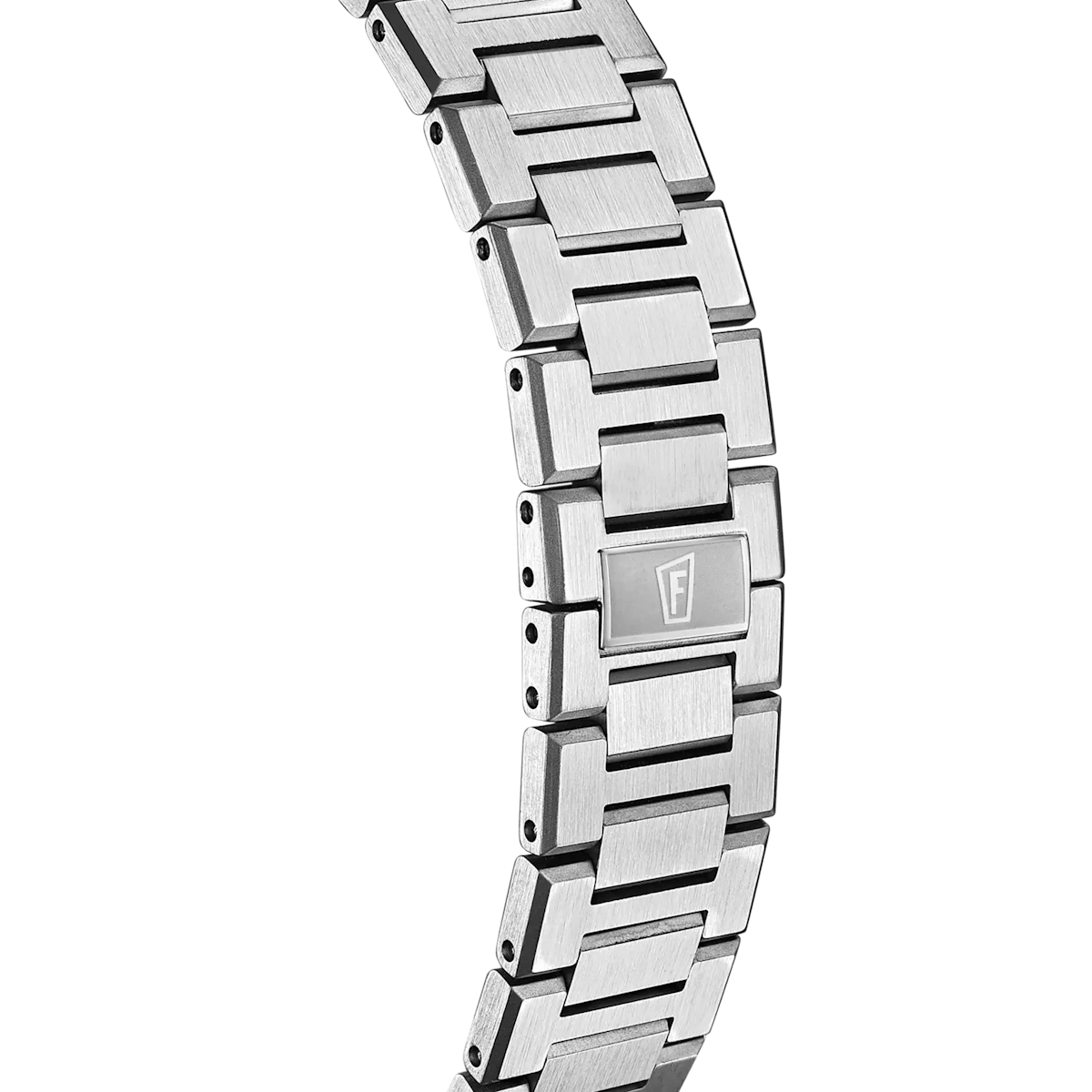 La cassa, realizzata in acciaio chirurgico, è progettata per resistere alle esigenze quotidiane senza compromettere né lo stile né il comfort.