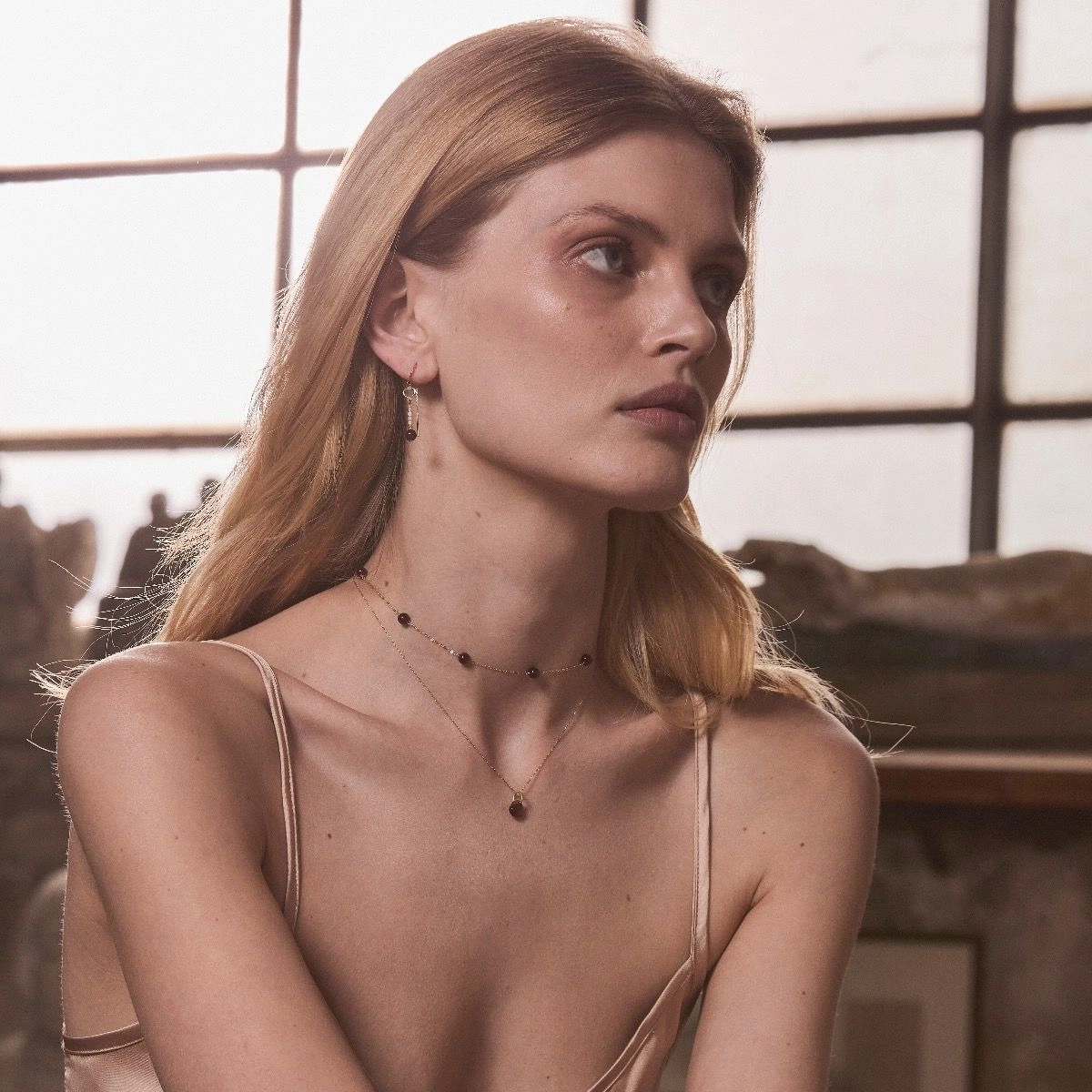 Girocollo realizzato in oro giallo 18 carati con pietre di Granato rosso.