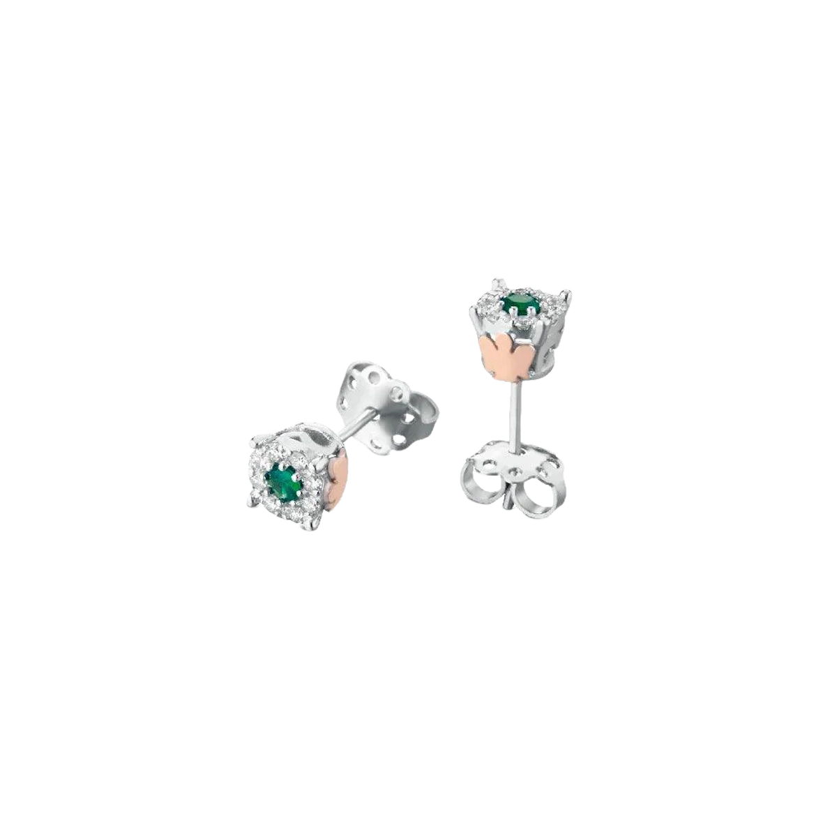 Orecchini Angelo in Oro Rosa con Diamanti e Smeraldi