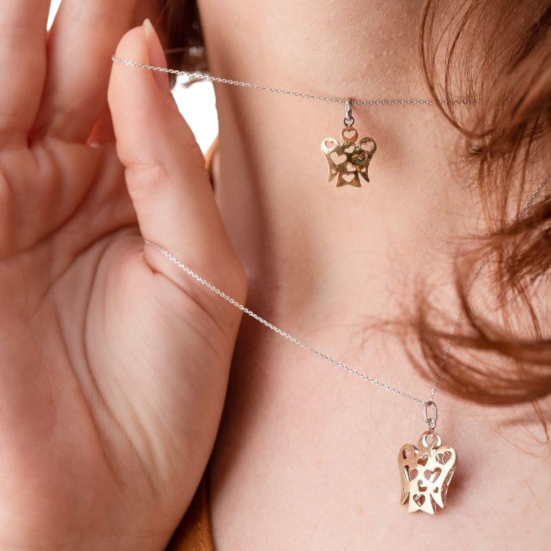 Preziosa ed elegante la collana in oro bianco con pendente angelo è un accessorio unico e inimitabile. La delicata catenina in oro bianco rende la collana molto minimale e perfetta per uno stile raffinato, protagonista dell’accessorio è il charm, estremamente particolare e realizzato in maniera accurata. Un pendente a forma di angelo con intagli a cuore. Un particolare di stile estremamente delicato ma di altissima qualità che illumina in maniera unica il viso di chi lo indossa. Idea regalo perfetta per suggellare una profonda emozione, l’angelo è uno dei simboli più ricchi di significato che ci siano, amore, protezione e tanti altri sentimenti che accompagnano che riceve questo dono prezioso.