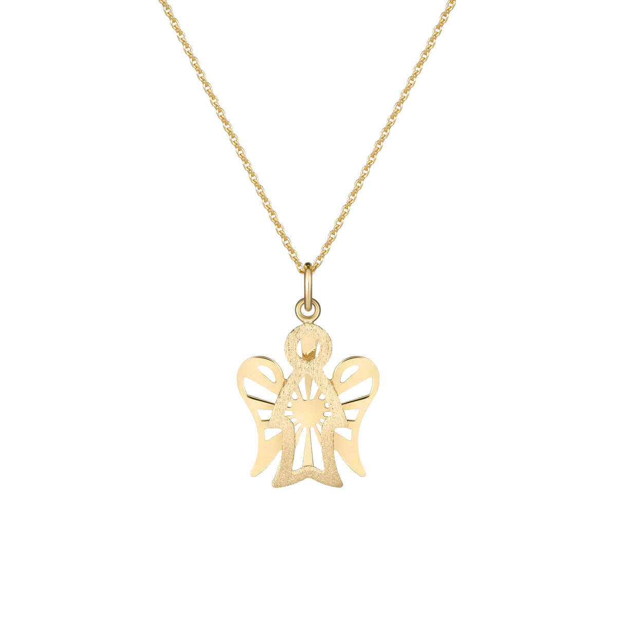 Questa collana con Angelo e cuore in oro giallo, racchiude al suo interno un cuore radioso, simbolo dell’amore che illumina ogni aspetto della nostra esistenza. Un gioiello che non solo incarna la purezza dell’anima, ma trasmette anche la potenza dell’amore universale.